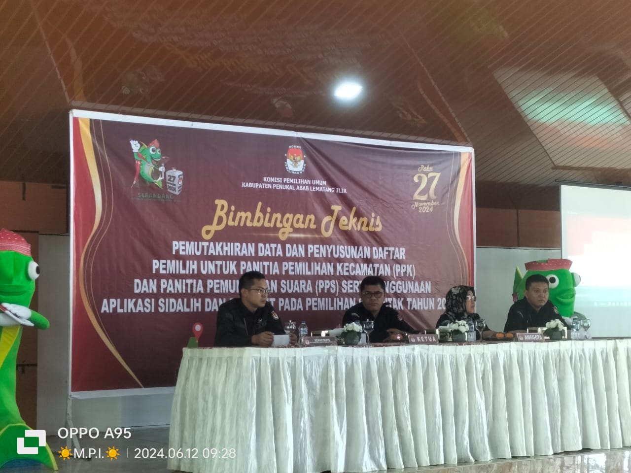 Pelaksanaan Bimtek PPK dan PPS ini diadakan selama tiga hari, yang di mulai tanggal 12 juni sampai tanggal 14 Juni 2024, yang bertujuan untuk memberikan pemahaman yang terkait data Pemilu. Bila tiba saat Pemilu nanti Petugas PPK dan PPS benar-benar mampu serta mempunyai loyalitas yang meyakinkan pada pemilu 2024. ( Tarmizi )