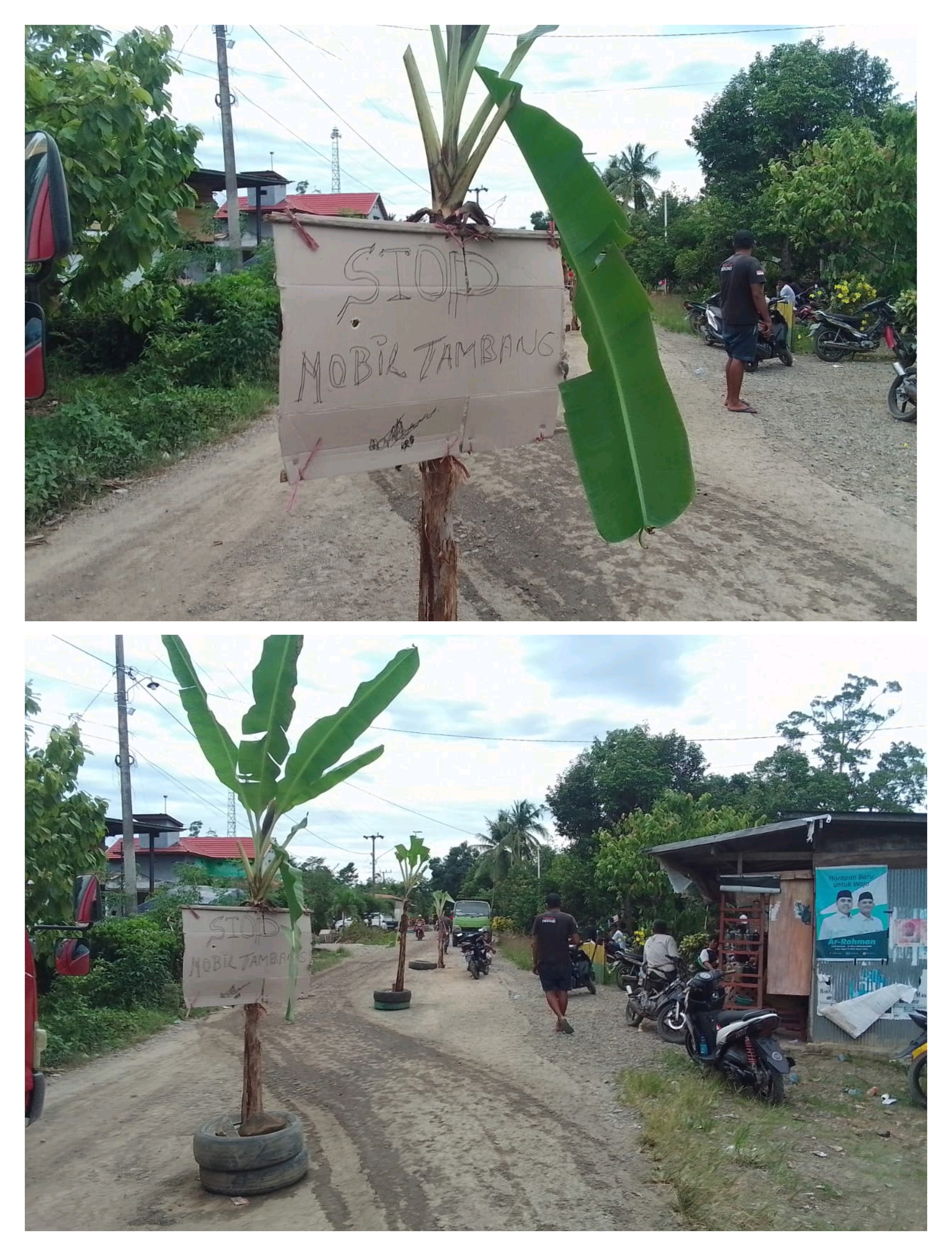 “Ini kami lakukan karena warga sudah geram mobil tambang lewat di desa kami mengakibatkan debu, kalo malam lewat didepan rumah suara musik serta deru mobilnya ribut mengganggu istirahat warga” terangnya salah satu warga.