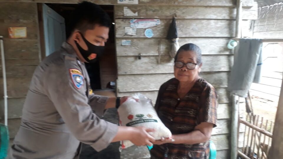 Anggota Polres Bangka Barat Salurkan Bantuan Paket Sembako Kepada Warga Tidak Mampu (Polisi penolong masyarakat)