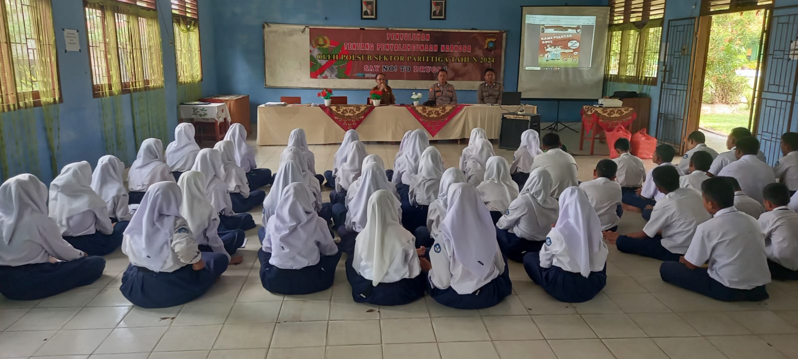 Porosindonesia.id Babar – Anggota Polsubsesktor Parit Tiga melaksanakan giat Penyuluhan masyarakat terhadap siswa / siswi SMPN 2 Jebus 07/05/2024