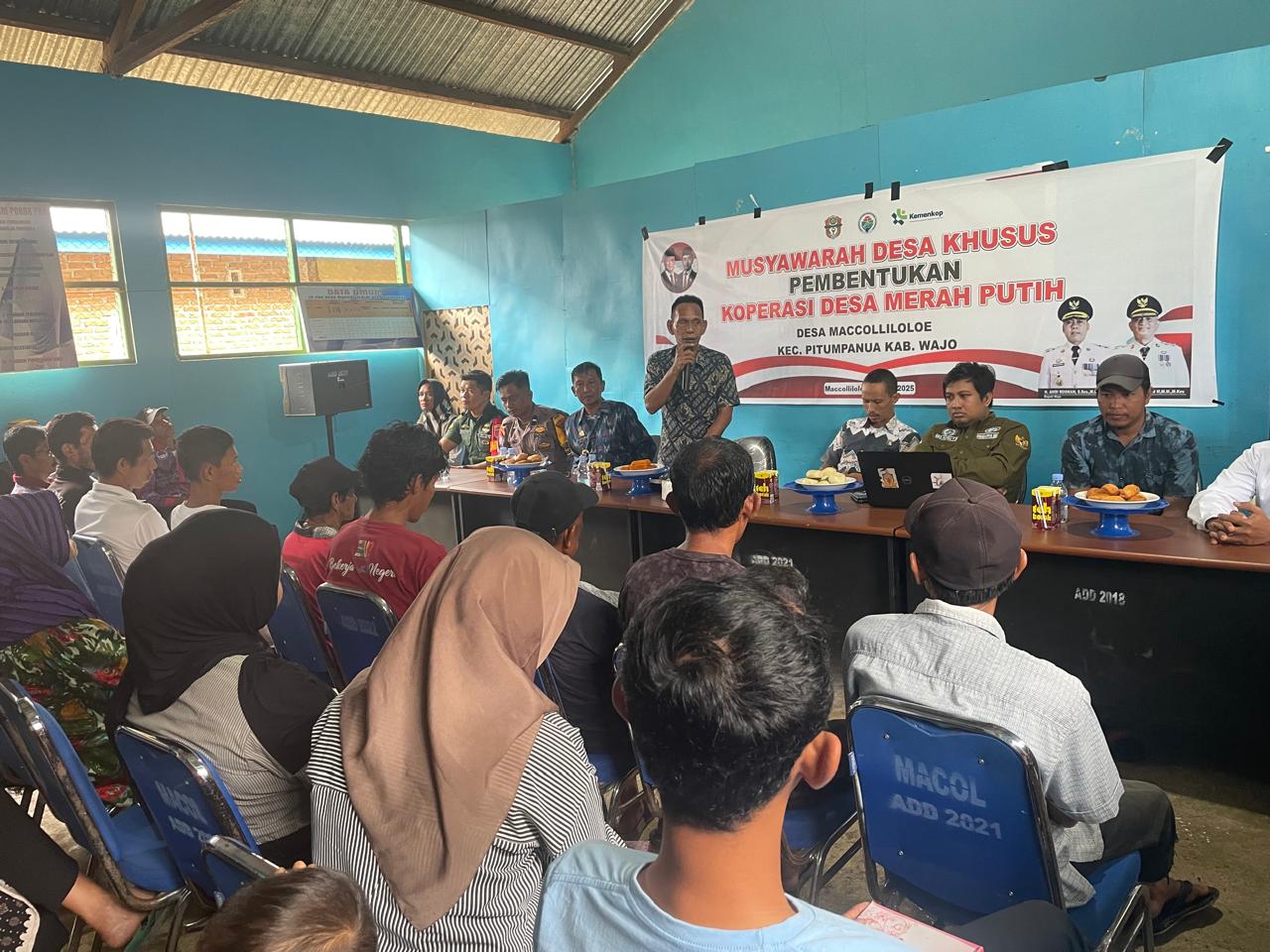 Menghadiri/mengikuti kegiatan Musyawarah desa Khusus Pembentukan Koperasi Desa Merah putih Maccolliloloe yang di hadiri oleh: