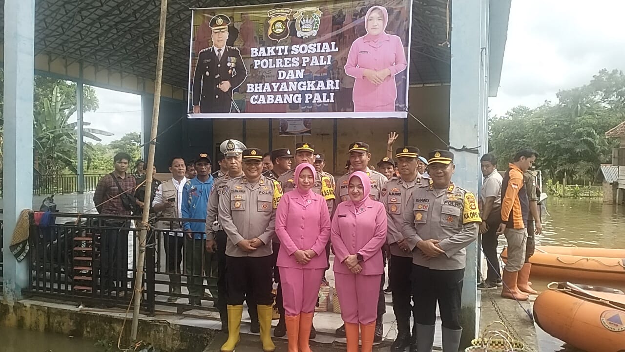 Kapolres Penukal Abab Lematang Ilir (PALI ) KHIRU dan ibu Bhayangkari cabang PALI membagikan bantuan ke beberapa rumah warga yang tergenang banjir dengan menaiki perahu speetboat yang telah disiapkan oleh BPBD Kab.PALI. Acara yang seharusnya di hadiri oleh Wabup PALI tapi Karena sesuatu dan lain hal Wabup tidak bisa hadir.