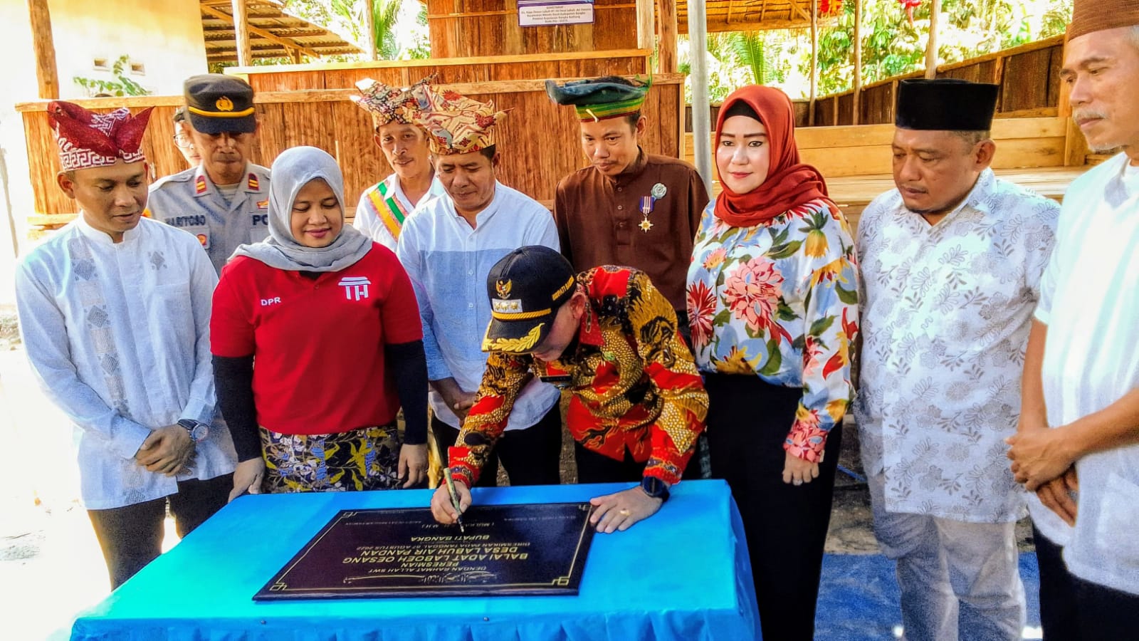 Sungailiat, Poros Indonesia – Acara peresmian balai adat laboeh Oesang desa labuh Air pandan kecamatan Mendo barat kabupaten Bangka, dilakukan Bupati Bangka Mulkan SH., MH. Turut hadir dalam acara tersebut Ketua Lembaga Tinggi Masyarakat Adat Republik Indonesia Bangka Belitung, Dato Pangeran Sardi Boman MM. Wakil Ketua Majelis Tinggi Peradaban Pangkalpinang Dato Radindo Drs. Mulyono, Lembaga Komunikasi Pemangku Adat Indonesia Bangka Belitung, Dato Dela, S.Pd, Lembaga Adat Melayu kabupaten Bangka diwakili bapak Wahar Saksono, Ketua tim penggerak PKK kabupaten Bangka, Ibu Yusmiati Mulkan, Kapolres, Kajari, Dandim 04.13 Bangka, Ketua Adat Mapur ataupun Air Abik yaitu Abang Kita bapak Gidoi, para kepala OPD di lingkungan Pemkab Bangka, Direktur PDAM Tirta Bangka bapak Suhendra beserta ibu, Dekan Fakultas Hukum UBB, Ibu Derita Prapti Rahayu, SH, MH.