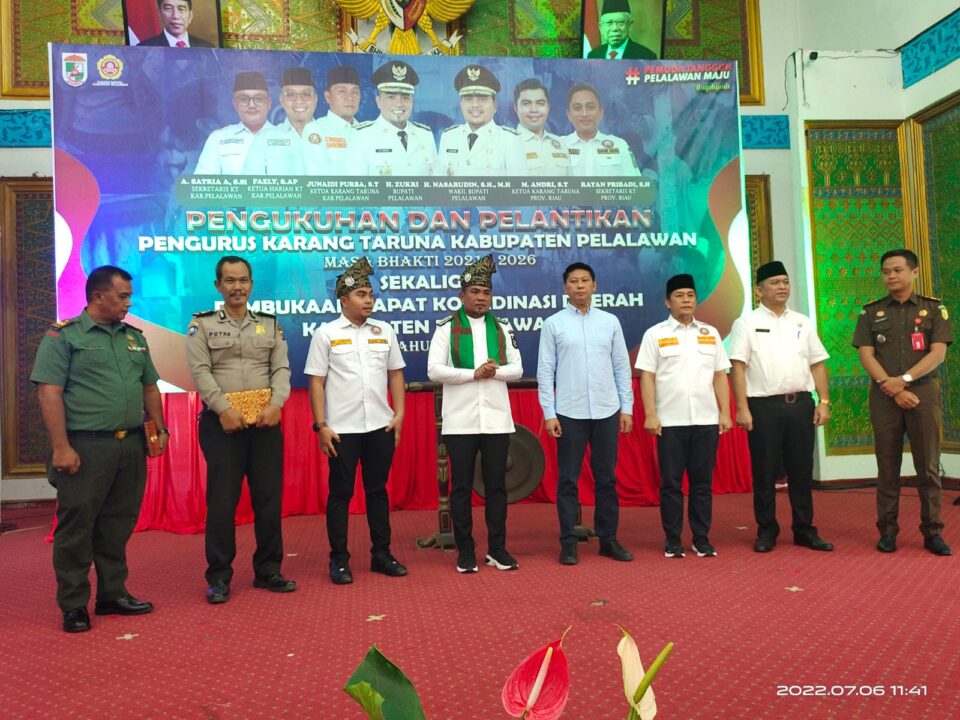 Poros Indonesia, Pelalawan – Pengurus Karang Taruna Kabupaten Pelalawan periode 2021-2026 resmi dilantikan Bupati Pelalawan, H Zukri Misran, Rabu (6/7/2022)di Gedung daerah Datuklasmana Mangkudiraja, Komplek Kantor Bupati Pelalawan.
