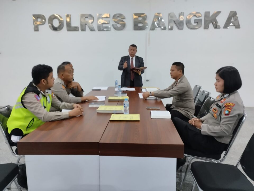 Poros Indonesia, Sungailiat – Guna meningkatkan keimanan dan ketaqwaan kepada Allah Tuhan Yang Maha Esa serta membentuk karakter Personel Polri yang humanis, Personel Polres Bangka melaksanakan kegiatan pembinaan rohani dan mental (Binrohtal). Kamis (6/7/2023).