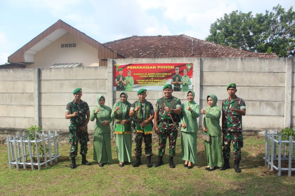 Guna menciptakan lingkungan yang asri, Danbrigif 8/Garuda Cakti didampingi Ketua Persit KCK Cabang XI Brigif 8 disaksikan oleh seluruh prajurit dan Persit Yonif 141/Aneka Yudha Jaya Prakosa melakukan penanaman bibit pohon.