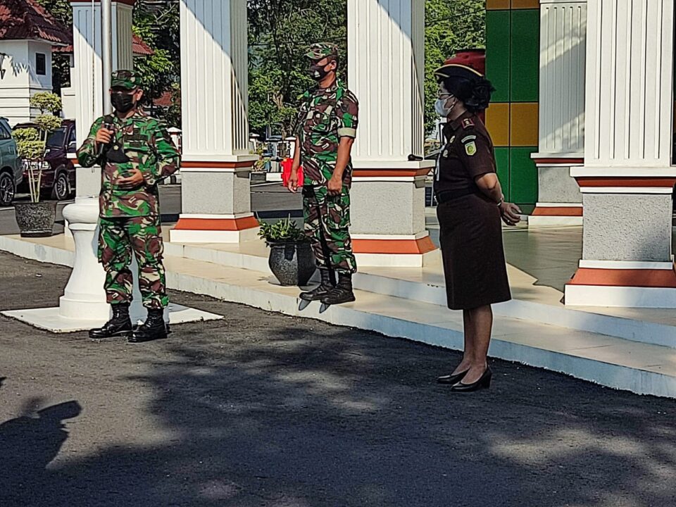 Poros Indonesia, Sungailiat – Pada Rabu 13 April 2022, dua orang personil Koramil 06/ Sungailiat atas nama Peltu Fahrijal dan Sertu Purnawirawan melaksanakan pelatihan PBB (peraturan baris berbaris ) di kantor Kejari Kab. Bangka.