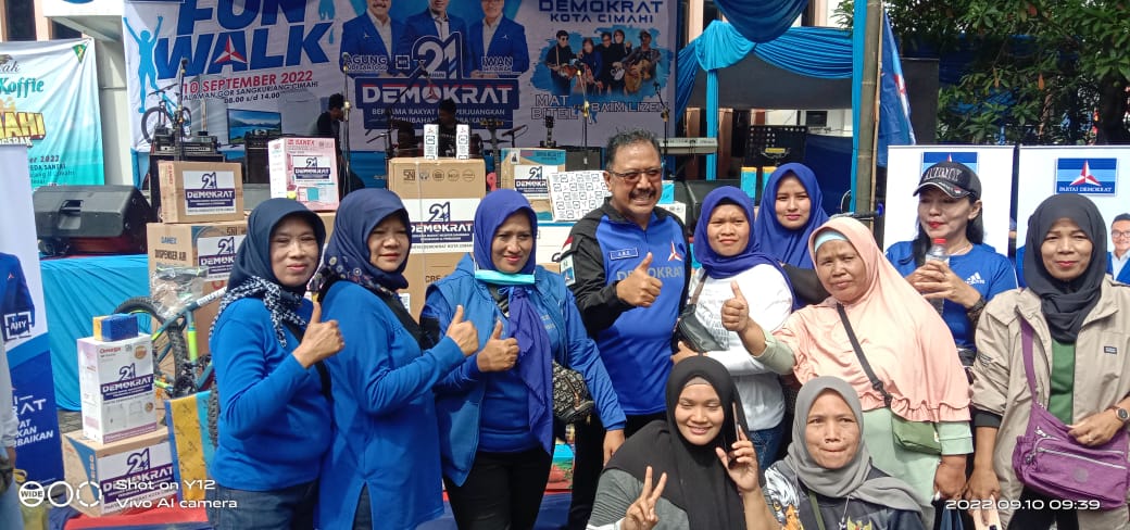 Poros Indonesia, Kota Cimahi – DPC Demokrat kota Cimahi mengadakan kegiatan Fun Walk di G.O.R depan lapangan Sangkuriang kota Cimahi , Sabtu, 10 September 2022.