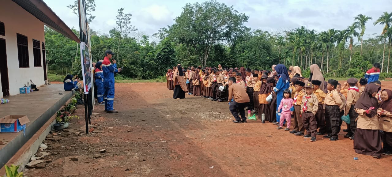 Supt HSSE Ops. Sumarjono mengajak anak anak SD IT ALFURQON untuk ikut serta untuk menanam pohon dan memperkenalkan anak anak SD IT ALFURQON peduli sampa secara langsung di lapangan.