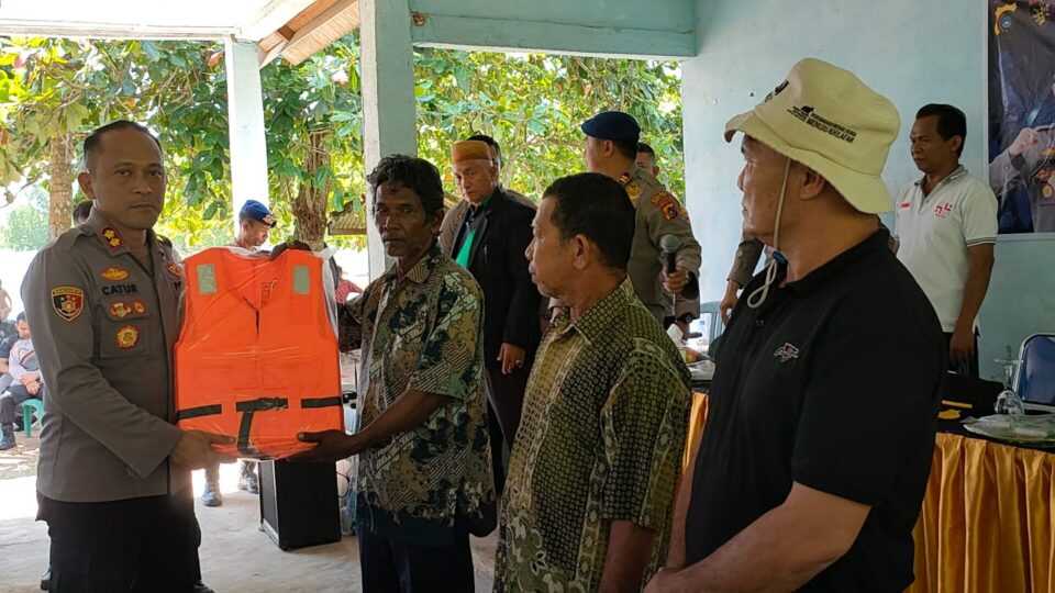 Setelah melaksanakan jumat curhat Polres Bangka Barat juga membagikan bantuan kepada nelayan masyarakat Kundi bersatu berupa life jaket, dan lampu navigasi.