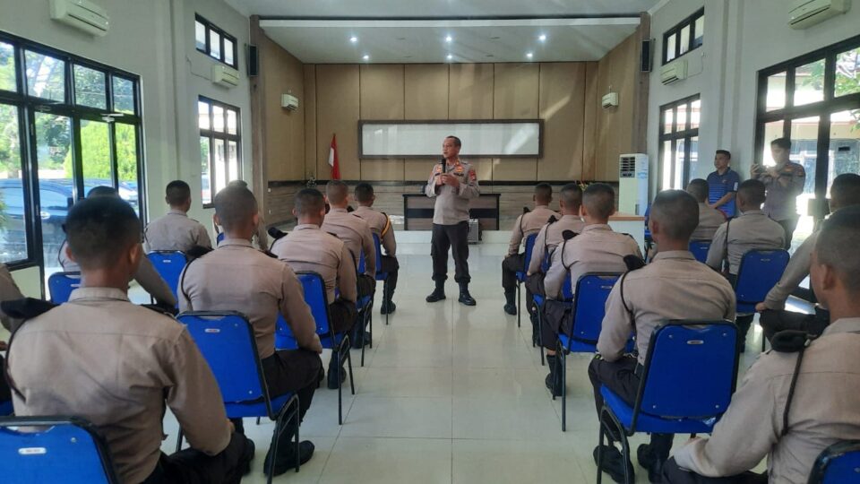 Poros Indonesia, Bangka Barat – Sebanyak 23 orang siswa latihan kerja (Latja) SPN Polda Kep. Babel menerima pembekalan oleh Kapolres Bangka Barat AKBP Agus Siwanto,SH,SIK,MH di Aula Catur Prasetya Polres Bangka Barat. Jum’at(10/06/2022).