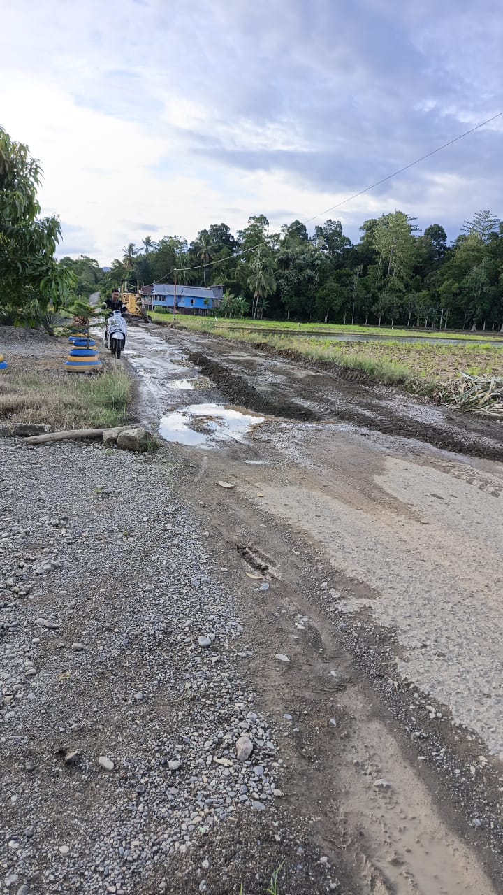 Banyaknya tumpukan tanah serta kubangan di jalan, dengan menggunakan anggara pribadi, Jumasril lakukan perbaikan jalan.