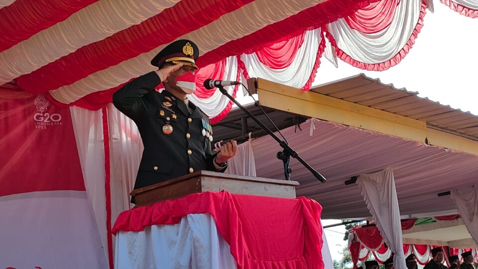 Poros indonesia, Bangka Barat – Kapolres Bangka Barat AKBP Catur Prasetiyo SIK menjadi Inspektur Upacara di Hari Ulang Tahun (HUT) Kemerdekaan Republik Indonesia yang ke -77. upacara tersebut dilaksanakan di lapangan Atletik Pemkab Bangka Barat Rabu Pagi, 17 Agutus 2022.