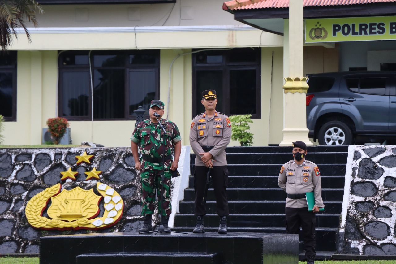 Apel bersama dipimpin Pabung Kodim 0413 Bangka Kolonel Arm. B.Karo Karo dan didampingi Kapolres Bangka AKBP Indra Kurniawan, S.H., S.I.K., M.Si diikuti oleh PJU Polres Bangka, Danki Brimob Sungialiat Ipda Triyono, Personil Sat Brimob, Personil Kompi Senapan B, Personil Koramil Sungailiat, Personil Polres Bangka