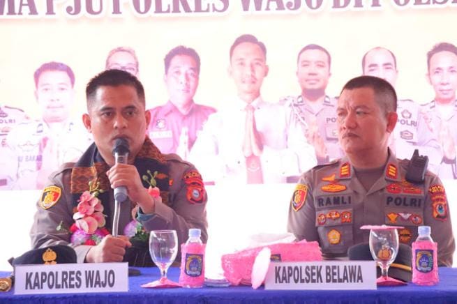 Dalam kesempatan tersebut Kapolres Wajo memberikan arahan dan pesan-pesan Kamtibmas sekaligus wujud silaturahmi dengan para tokoh masyarakat Kecamatan Belawa.