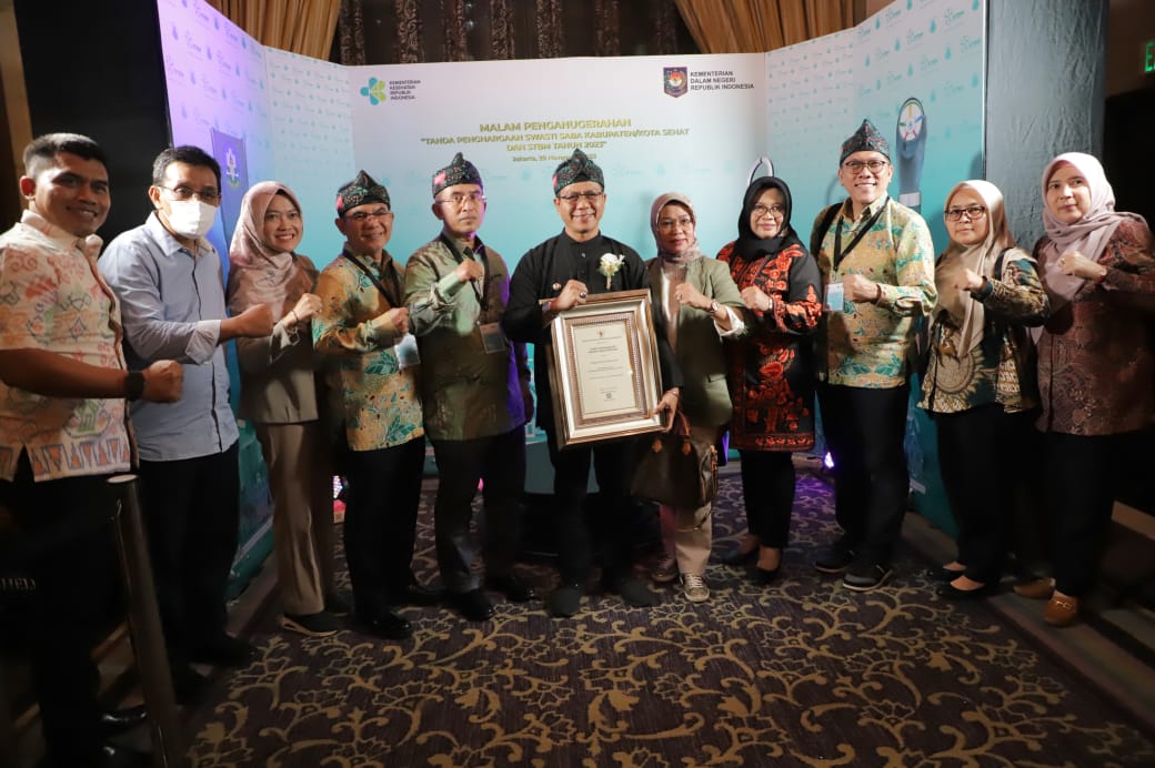 Anugerah Wistara diterima langsung Bupati Bandung dari Sekjen Kemendagri Suhajar Diantoro, saat Malam Penganugerahan Penghargaan Kabupaten/Kota Sehat (Swasti Saba) dan STBM Award Tahun 2023, di Grand Ballroom Hotel Kempinski, Jakarta, Selasa (28/11/23) malam. Malam penganugerahan dari Kementerian Kesehatan ini juga dalam rangka memperingati Hari Kesehatan Nasional 2 November.