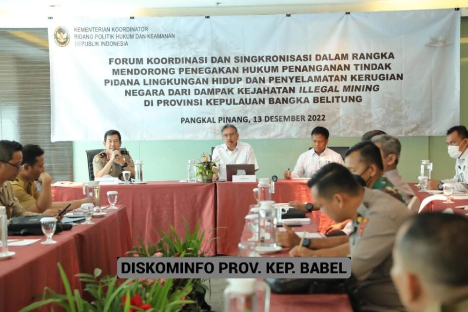 Poros Indonesia, Pangkalpinang – Sebagai upaya mengatasi permasalahan pertambangan ilegal dan kerusakan lingkungan pasca penambangan di Provinsi Kepulauan Bangka Belitung (Prov. Kep. Babel), Penjabat (Pj) Gubernur Ridwan Djamaluddin bersama pihak Kementerian Koordinator Bidang Politik Hukum dan Keamanan RI menggelar Forum Koordinasi dan Sinkronisasi.