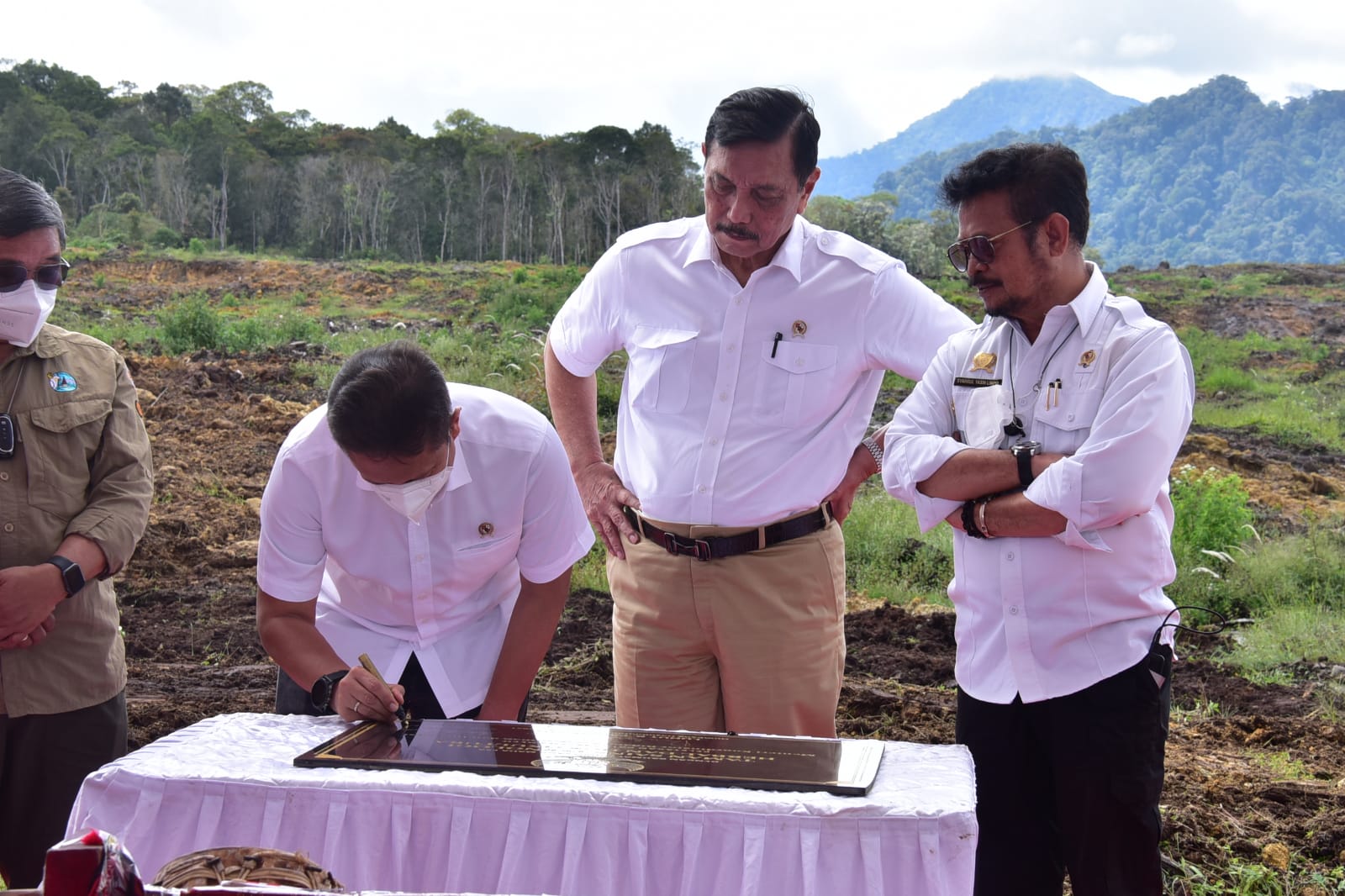 Poros Indonesia, Humbahas,- Menteri Koordinator Bidang Kemaritiman dan Investasi (Menko Marves) Luhut Binsar Panjaitan bersama Menteri Pertanian (Mentan) Syahrul Yasin Limpo melakukan groundbreaking Taman Sains dan Tanaman Herbal Hortikultura (TSTHH) Humbang Hasundutan (Humbahas). Kegiatan ini di dilaksanakan di Desa Aek Nauli, Pollung Humbahas Sumatera Utara pada Kamis(23/12/21).