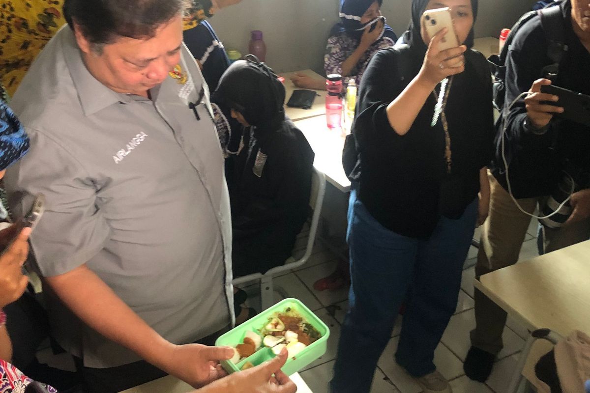 “Makan gratis ini untuk gizi yang lebih baik,” kata Menteri Koordinator Bidang Perekonomian, Airlangga Hartarto, dalam sambutannya, di SMP Negeri 2 Curug, Tangerang, Kamis (29/2/2024).