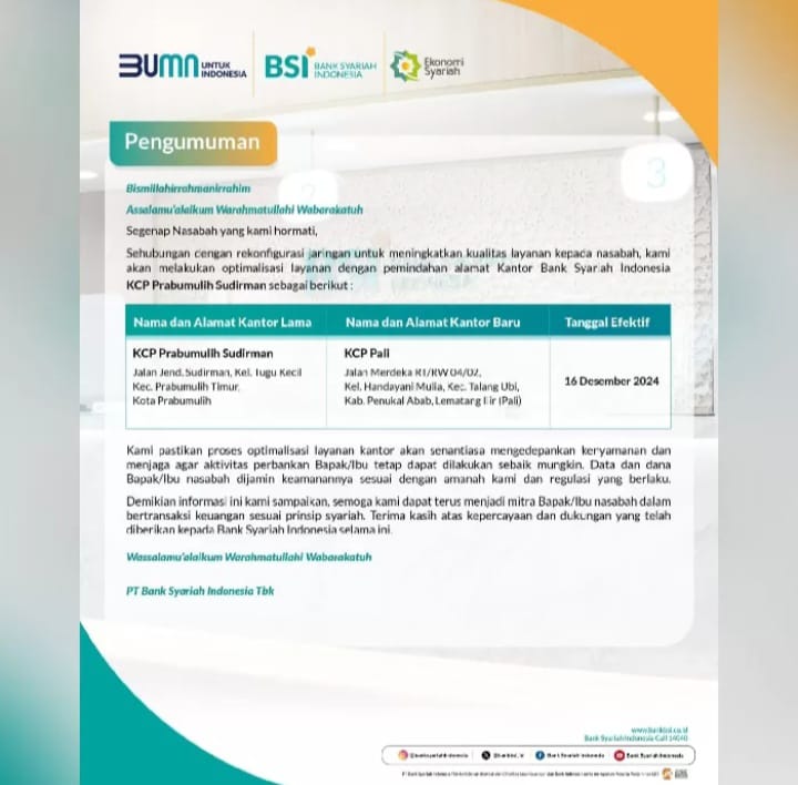 Sampai berita ini disusun, Pimpinan Cabang (Pinca) BSI PALI belum memberikan tanggapan resmi. Ketika dikonfirmasi melalui pesan WhatsApp oleh wartawan media ini, pesan yang dikirim belum dibalas.