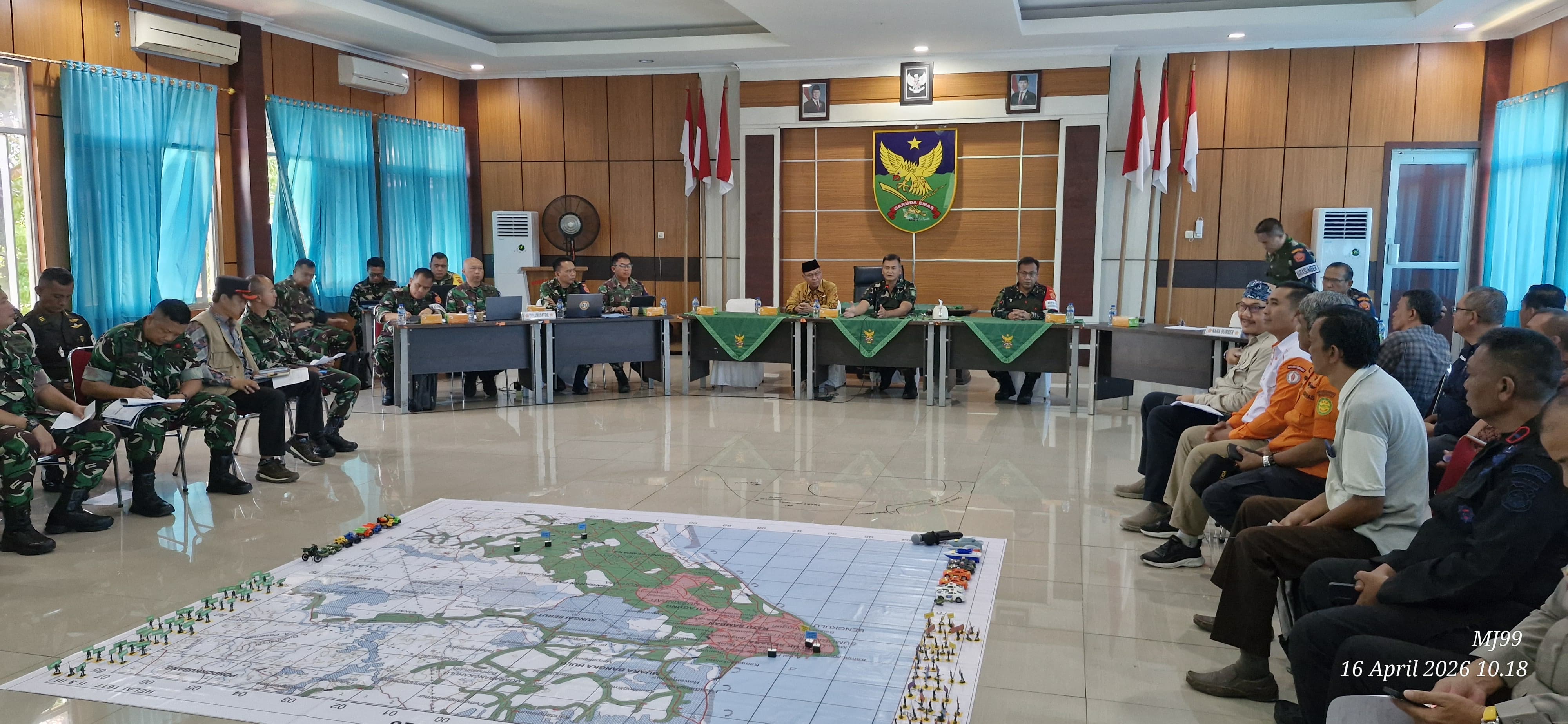 Porosindonesia.id.”Bengkulu — Panglima Komando Gabungan Wilayah Pertahanan I selaku Pangkogabpad, Letjen TNI Kunto Arief Wibowo, memimpin langsung kegiatan Tactical Floor Game (TFG) dalam rangka latihan kesiapsiagaan operasional penanggulangan bencana gempa bumi megathrust, yang dipusatkan di Markas Korem (Makorem) 041/Gamas, Bengkulu.