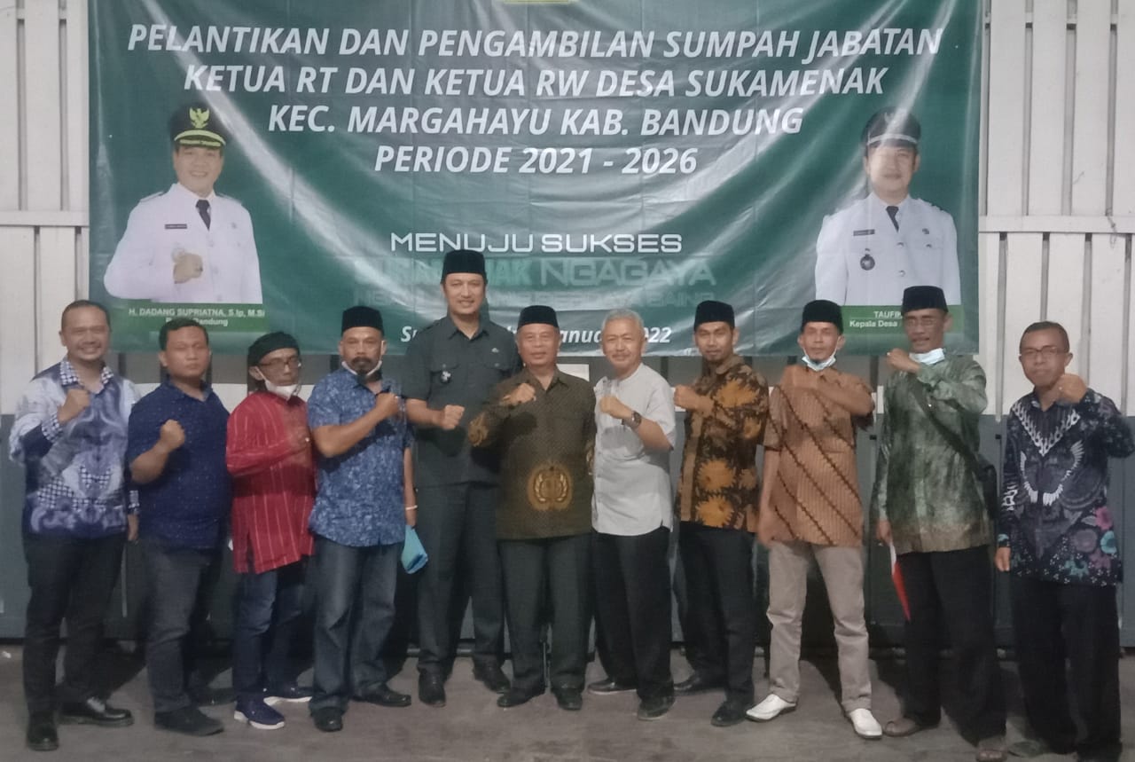 Poros Indonesia, Kabupaten Bandung — Pelantikan dan pengambilan sumpah jabatan ketua Rukun Warga (RW) dan ketua Rukun Tetangga (RT) desa Sukamenak, kecamatan Margahyu, Kab,Bandung periode 2021 – 2026 Menuju sukses Sukamenak Ngagaya ( Ngahiji Agamis dan Berdaya Saing ).