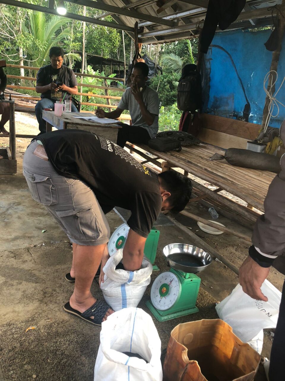 Beberapa orang yang diduga panitia penambangan di Tanjung Batu yang di dapati oleh awak media, tengah melaksanakan kegiatan membagi-bagi timah dari penambang ponton isap produksi (PIP) yang diduga ilegal dengan sangat santai tanpa menghiraukan keberadaan awak media yang berada disamping mereka.