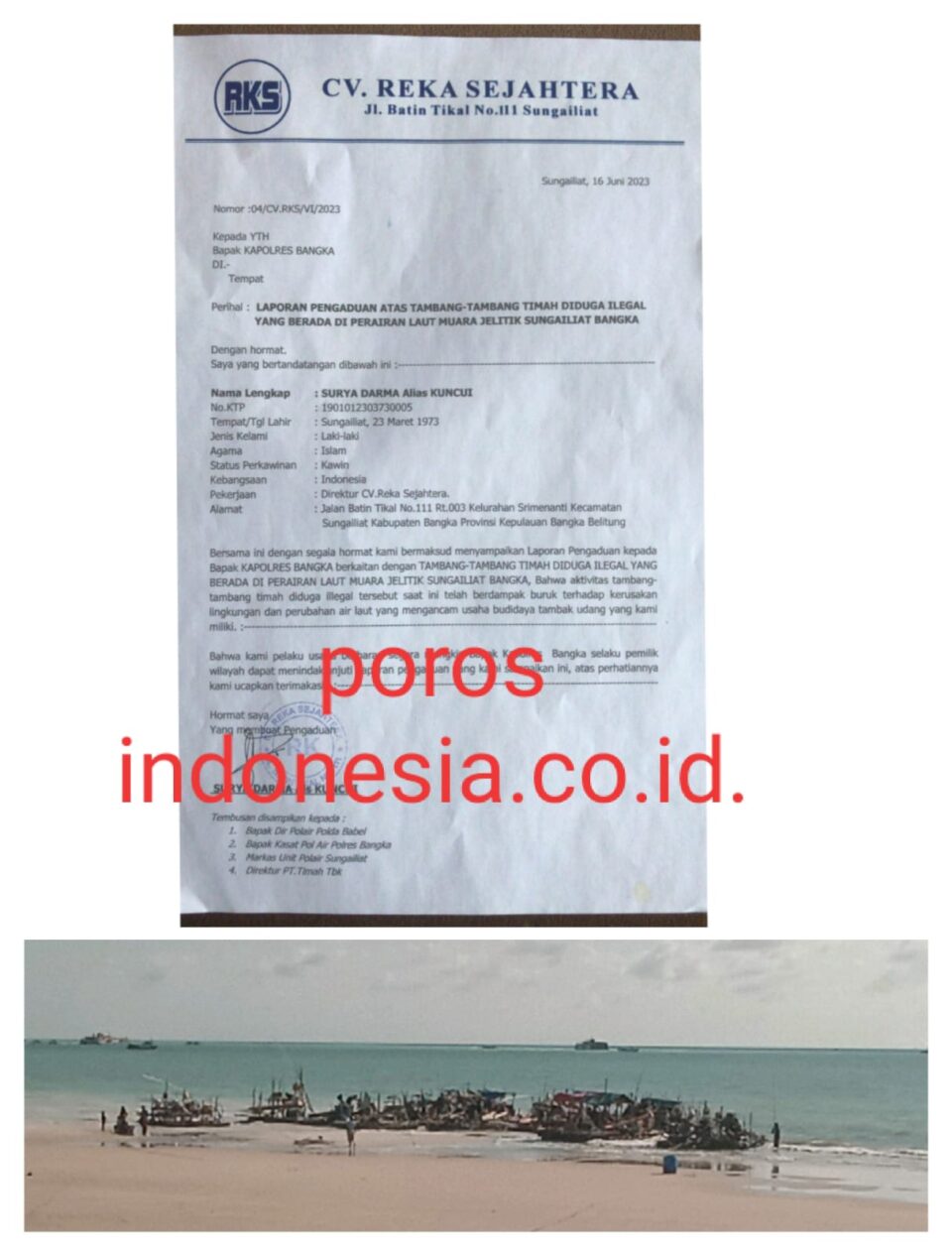 Poros Indonesia, Sungailiat – Penambangan ilegal di tepi pantai Rambak sangat meresahkan pengusaha tambak udang 18/06/2023