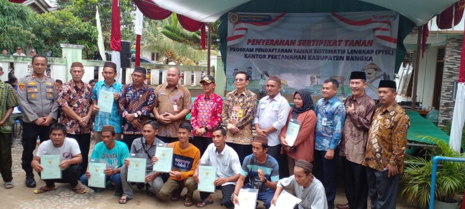 Poros Indonesia, Bangka – Penyerahan 886 surat tanah kepada masyarakat Kemuja oleh Bupati Bangka.Mulkan SH.MH. 26/01/2023