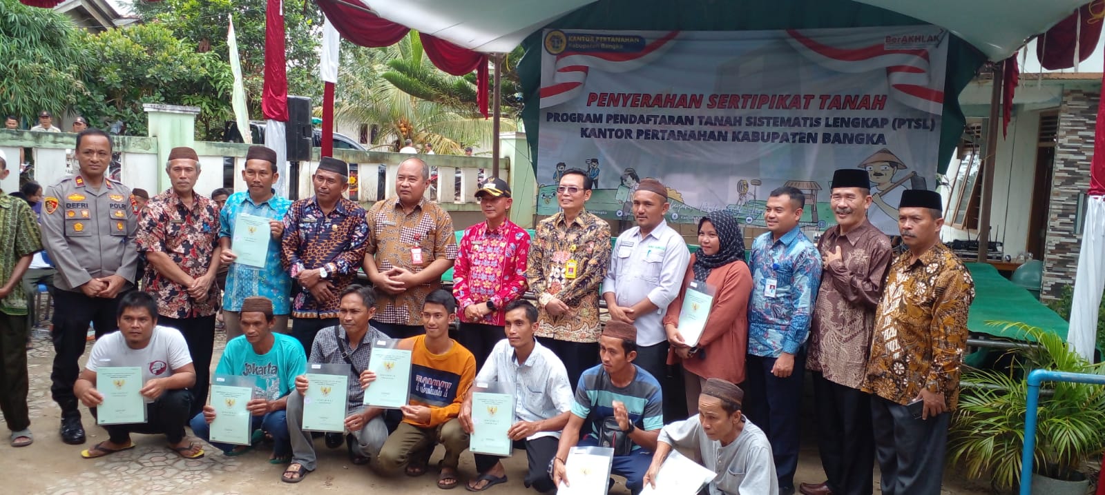 Bupati Bangka Mulkan SH.MH.meminta kemasyarakat agar dengan adanya surat tanah bapak dan ibu makan.kepemilikan tanah bapak ibu jelas,tidak lagi seperti jaman-jaman dulu kita hanya berbatasan patok-patok seperti batang pisang atau pohon-pohon yang kita jadikan patok batas,tapi dengan adanya surat tanah bapak ibu maka jelas kepemilikan tanah bapak.seaneainya suatu saat bapak perlu dana untuk bayar biaya sekolah anak yang mendesak bapak bisa menjaminkan keterangan kalau tetangga tidak percaya atau kah bapak ibu ingin usaha perkebunan atau apa saja itu bisa mengajukan pinjaman untuk menambah modal usaha bapak atau ibu.