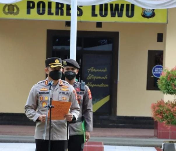 Kapolres Luwu, AKBP Arisandi bertindak sebagai pemimpin Apel Pagi. Dia meminta seluruh personel kembalikan kepercayaan warga terhadap institusu Polri.