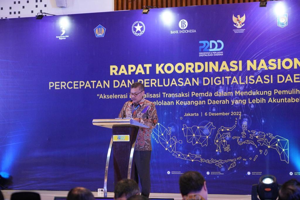 Mengusung tema “Akselerasi Digitalisasi Transaksi Pemda dalam Mendukung Pemulihan Ekonomi dan Pengelolaan Keuangan Daerah yang Lebih Akuntabel diikuti bersama seluruh kepala daerah selaku anggota P2DD dalam Rakornas.