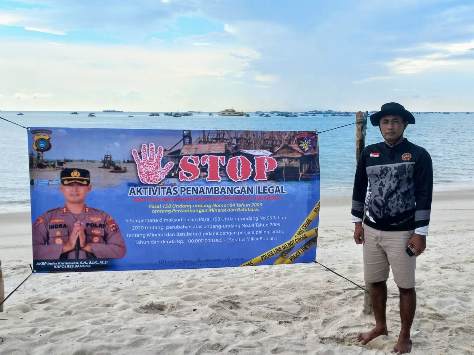“Dikesempatan lain Kapolres Bangka AKBP, Indra Kurniawan ,S.H., S.I.K.,M.Si melalui Kasat Polairud Polres Bangka Akp, Supanto menjelaskan kegiatan pemasangan spanduk peringatan ini dengan tujuan agar melarang adanya aktivitas penambangan timah ilegal atau tanpa izin di kawasan tersebut