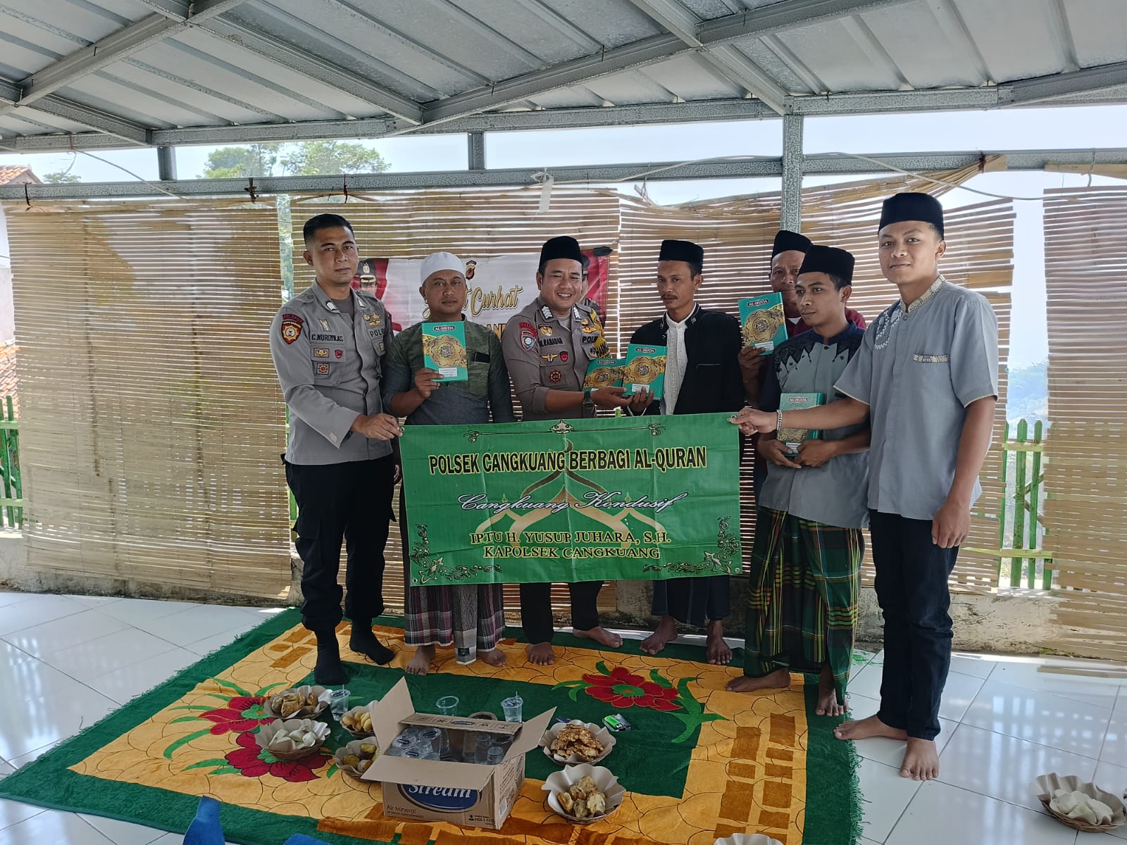 Kegiatan tersebut merupakan salah satu program Kapolsek Cangkuang yaitu *(SORBAN) Shodaqoh Bareng Kapolsek* yang bertujuan bersama sama mendorong generasi saat ini untuk cinta Al-quran dan menjadi penghafal Al-quran agar generasi saat ini tidak terbawa / terpengaruh dengan kegiatan yang negatif ucap Kapolsek Cangkuang Iptu H. Yusup Yuhara S.H.