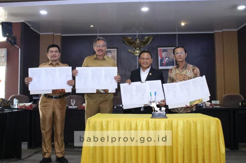 Pj Gubernur Ridwan Djamaluddin atas nama Pemprov. Kep. Babel mengucapkan terimakasih atas kerja keras Anggota DPRD Prov. Kep.Babel selama melakukan pembahasan hingga dapat disepakati dalam bentuk nota kesepakatan yang di tandatangani bersama pada hari ini.