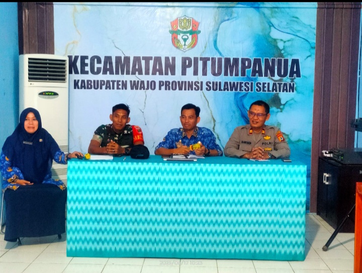“Ini merupakan kegiatan rutin Pemerintah Kecamatan Pitumpanua yang dilanjutkan dialog dan diskusi memberikan saran menyatukan persepsi tentang petunjuk teknis dan pelaksanaan kegiatan masyarakat diwilkum Pitumpanua” kata Wakapolsek Pitumpanua Iptu Haryadi, SH.