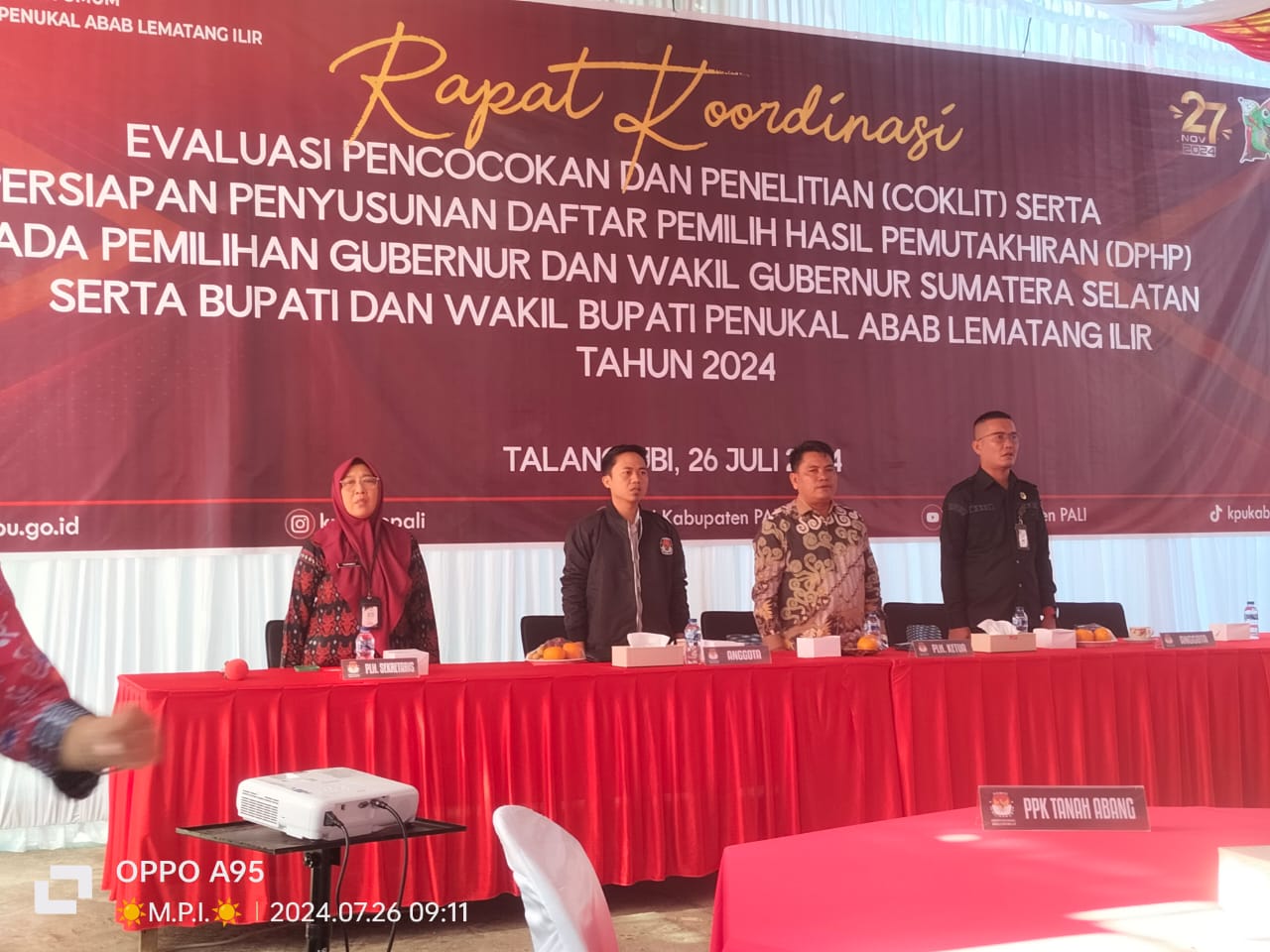 Pada rapat kordinasi yang di hadiri Panitia Pemilu Kecamatan(PPK) dan Panitia Pemungutan Suara(PPS) se-Kabupaten Pali yang terdiri dari lima kecamatan: