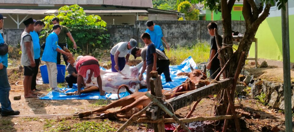 Adapun penyembelihan dilakukan di halaman samping RSUD Depati Bahrin pada tanggal 30 Juni 2023 dimulai pada pukul 08.00 pagi.