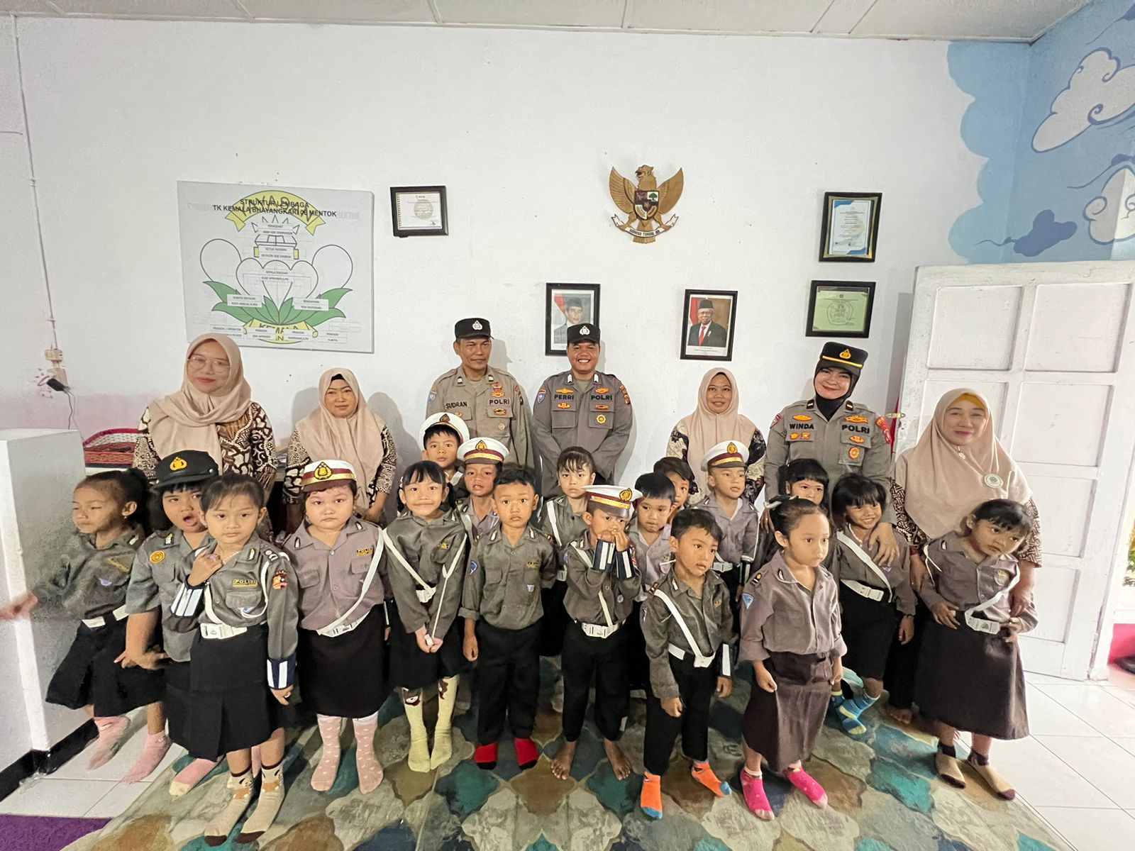 Anggota Sat Binmas juga mengingatkan kepada murid TK Kumala Bhayangkari untuk selalu patuh taat dan hormat terhadap guru karena mereka la yang mengajar dan membina kita semua dengan sabar.