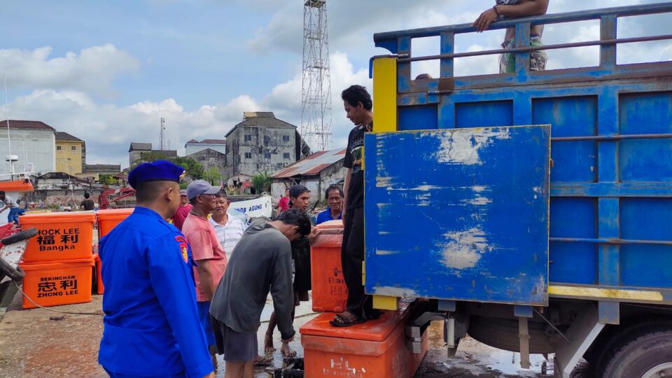 Pada kesempatan tersebut personel melakukan pemeriksaan terhadap kapal nelayan dan kapal tugboat yang berada di pelabuhan Mentok