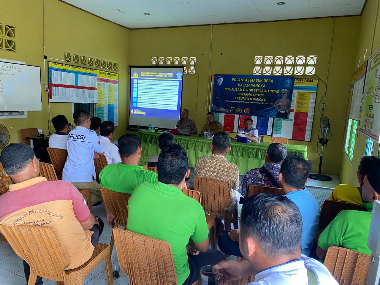 Porosindonesia.id.Bangka,–Satlantas Polres Bangka bersama Asosiasi Pemerintah Desa Seluruh Indonesia (APDESI) Kabupaten Bangka menggelar sosialisasi tertib lalu lintas di Kantor Desa Kapuk, Kecamatan Bakam, Selasa (12/11/24).