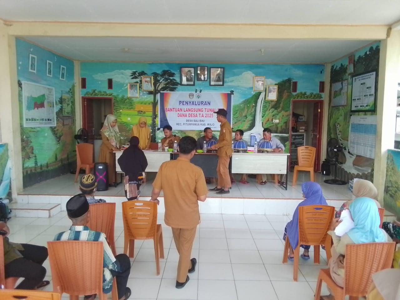 Selasa 16/09/2025 ,Penyaluran BLT Dana Desa tahap ini diselenggarakan di Balai Desa. Para penerima bantuan, yang sebelumnya telah didata, sebanyak 25 orang penerima bantuan langsung tunai berkumpul dan turut hadir Kepala desa, ketua BPD, seluruh kepala dusun desa BAU-BAU Para staff Kecamatan Pitumpanua kabupaten Wajo.