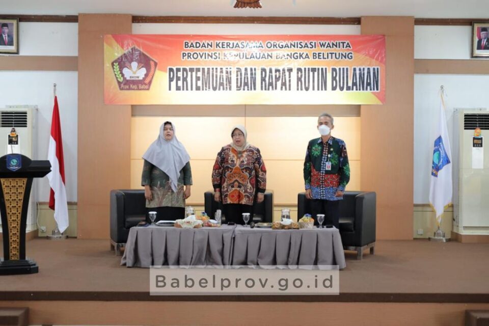 Poros Indonesia, Pangkalpinang – Guna tetap menjaga silaturahmi antar anggota Badan Kerja sama Organisasi Wanita (BKOW) Provinsi Kepulauan Bangka Belitung (Prov. Kep. Babel) yang terdiri dari pengurus DWP, IAD, Persit, Bhayangkari, PIA, Jalasena, dan lainnya, maka diadakanlah pertemuan dan rapat rutin bulanan bertempat di Gedung Mahligai Rumah Dinas Gubernur, Kamis (17/11/2022).