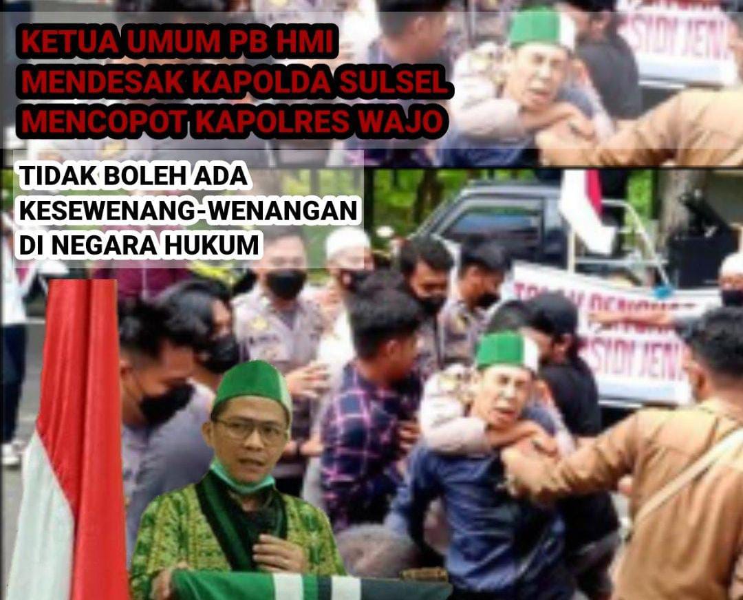 “Selaku Ketua Umum Pengurus Besar HMI MPO, Saya meminta kepada Kapolda Sulsel untuk mencopot Kapolres Wajo serta memecat oknum aparat yang telah lalai menjalankan tugasnya,” tegas dia
