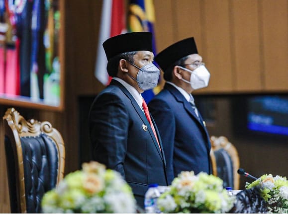 Poros Indonesia, Kota Bandung – Wali Kota Bandung, Yana Mulyana bersama Sekretaris Daerah Kota Bandung, Ema Sumarna menghadiri Rapat Paripurna DPRD Pengucapan Sumpah/Janji Pimpinan DPRD dan Anggota DPRD Kota Bandung Pengganti Antarwaktu Sisa Masa Jabatan Tahun 2019-2024 di Ruang Rapat Paripurna DPRD Kota Bandung, Rabu, 14 Desember 2022