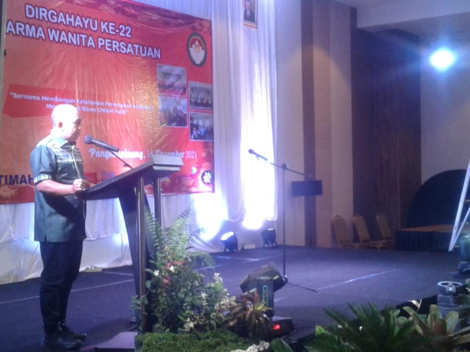 Poros Indonesia, Pgk Babel – Bertempat di Hotel Fox Haris Pangkalpinang Walikota Pangkalpinang DR.H.Maulan Aklil,S.IP.,M.SI selaku pembina DWP Beserta penasehat DWP Kota Pangkalpinang Monica Haprinda,S.IP.,M.SI hadiri dan Memberikan Sambutan Acara Peringatan HUT Ke-22 Dharma Wanita Persatuan (DWP) Tahun 2021 Pemerintah Kota Pangkalpinang bertema bersama membangun ketahanan perempuan Indonesia mental sehat bisnis UMKM pulih dengan undangan Seluruh Pejabat Eselon II, Seluruh Kabag Setdako, Seluruh Camat se Pangkalpinang.