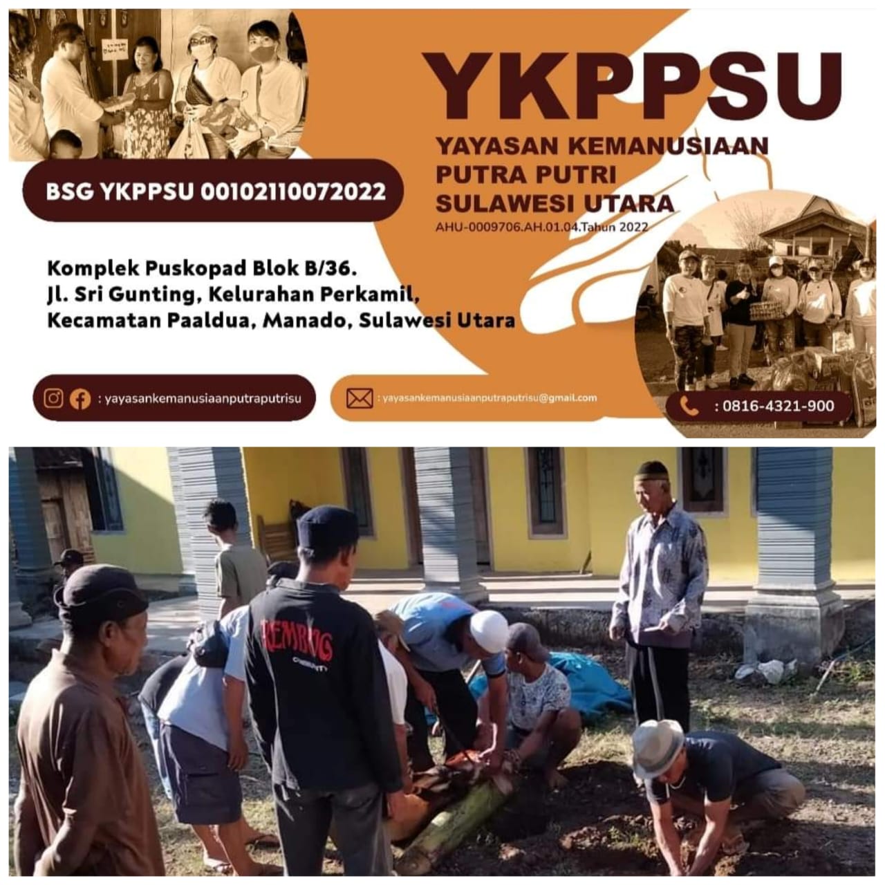 Poros Indonesia, Jawa timur – Yayasan kemanusiaan putra putri Sulawesi utara, berdonasi dalam rangka turut memeriahkan hari besar umat muslim Idul Adha dengan menyumbangkan 6 ekor kambing untuk qurban di Jawa timur, lewat pembina YKPPSU ibu Eni Thamsil pada 09 Juli 2022.
